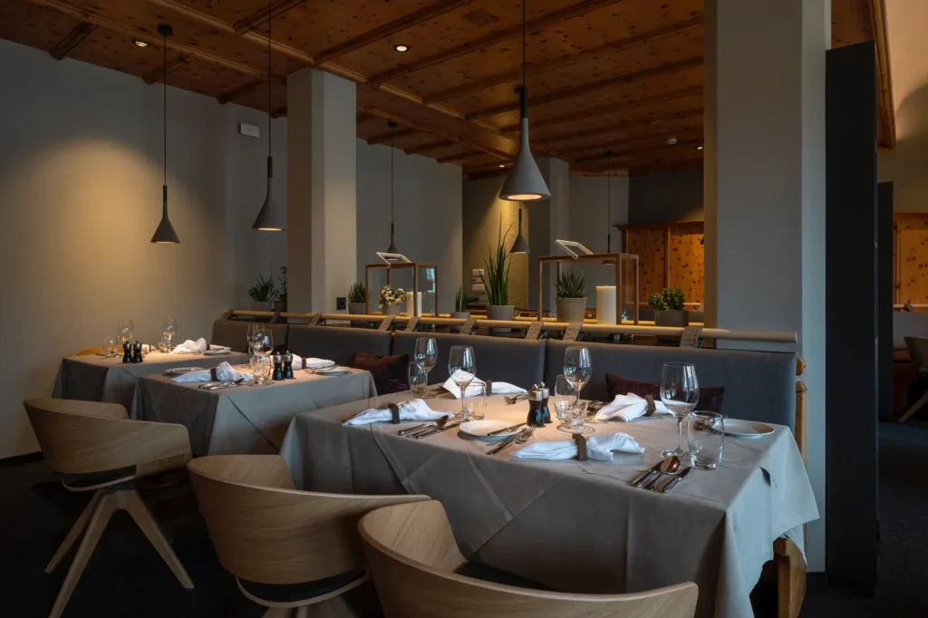 Wer dem seltenen Dinner zu zweit noch eins obendrauf setzen möchte, geht 200 Meter weiter rüber ins hoteleigene Restaurant «Scalottas». Wann kommt man als Eltern schon in den Genuss von 16 GaultMillau und einem Grünen Michelin Stern? In der ausgezeichneten Terroir-Küche darf nur auf den Teller, was die Natur hergibt. Bündner Hochgenuss vom Feinsten.
